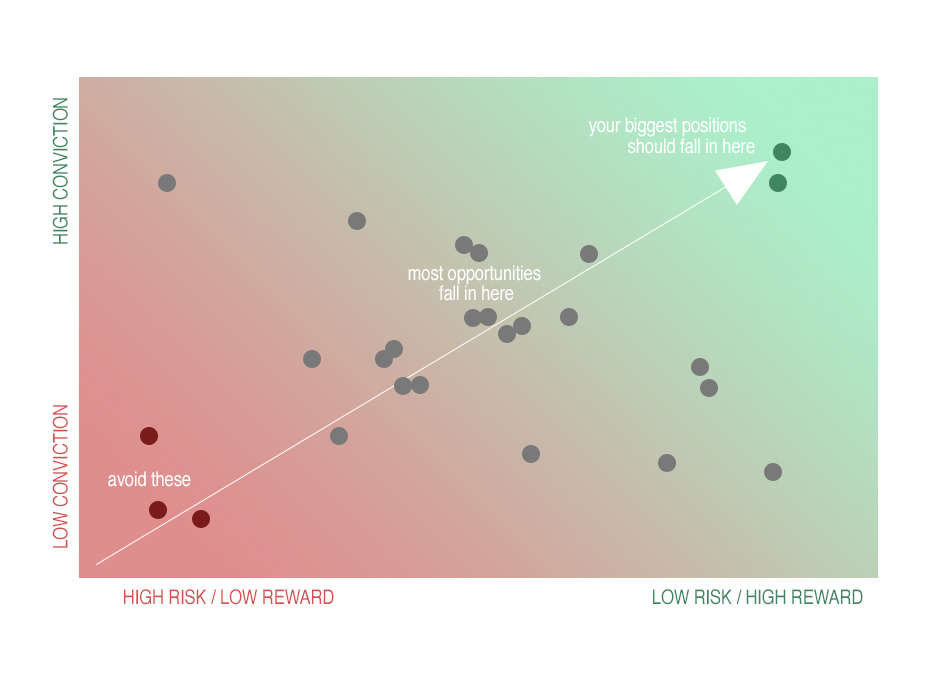 The convergence of High Conviction & Low Risk/High Reward are where your largest positions should live.