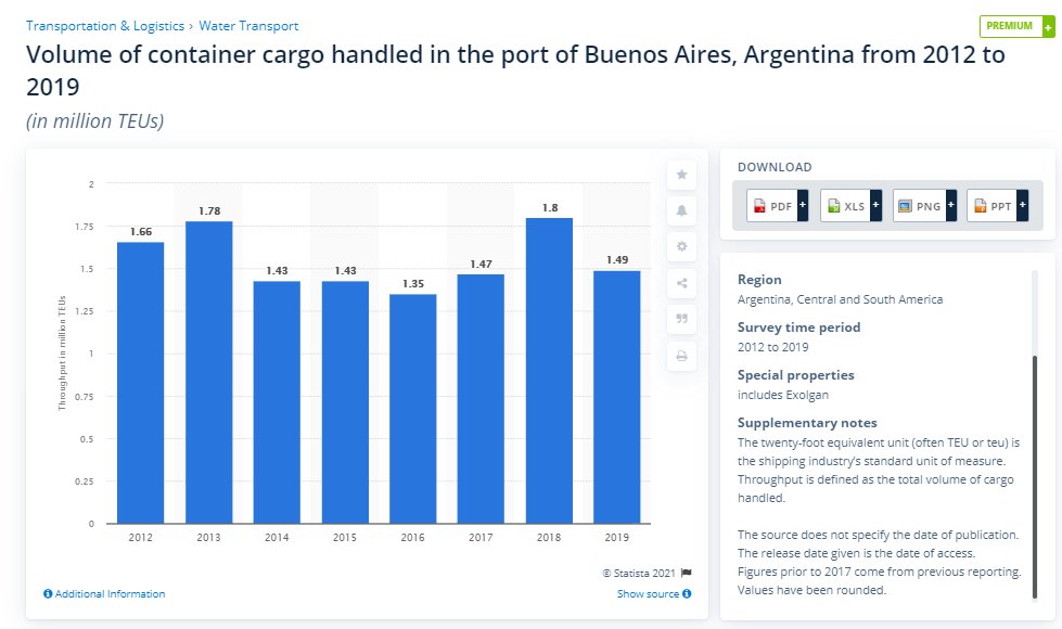 La retirada de la embajada danesa da una señal que ya no es relevante operar la terminal del puerto de Buenos Aires, puerto cuyo movimiento de TEUs (contenedores) está estancado. statista.com/statistics/729…