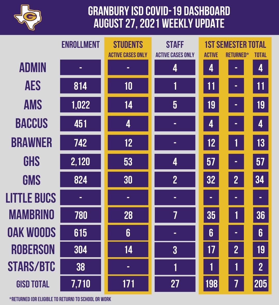 And this from Granbury ISD “leadership”: “we expect the number of active cases in our district to plateau and eventually decline”. Yeah, with no masks and a low vaccination rate, it only plateaus and goes down once everyone has gotten it.