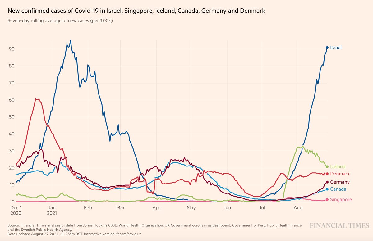 This phenomenon remains unexplained. If the main driver is simply waning immunity, these countries that are 3 months behind Israel may subsequently manifest this problem.