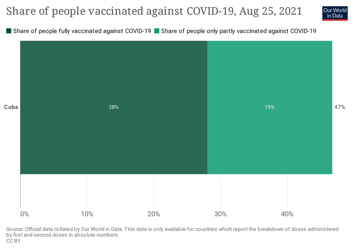 Como dije en un tuit anterior, con apenas 28% de su población completamente vacunada, Cuba🇨🇺 está bien lejos de la proyección que era del 70% para agosto. Incluso de la de 33.5% de julio. Todo eso, en medio de un aumento enorme de casos y muertes