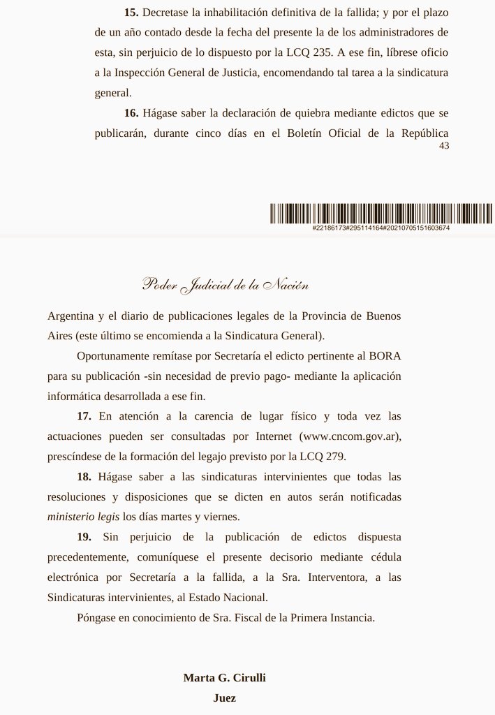 Se trata de una medida que la jueza Cirulli no puede determinar de oficio. La extensión de responsabilidades pueden pedirla los acreedores, el Estado, o el síndico del concurso. Esto significa que Gianfranco Macri y el estudio Tonelli (que cobró dinero) serán investigados.