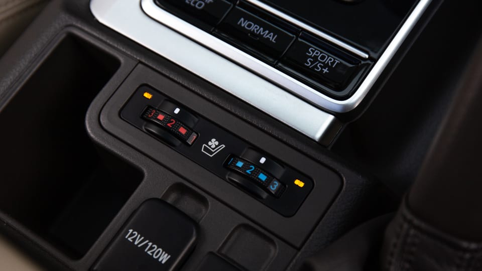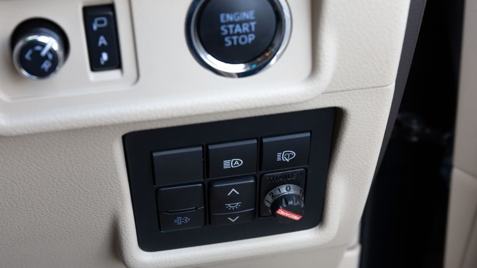Other niceties include keyless entry and start, heated seats in the first two rows of seating (outer seats on the second row), ventilated front seats, leather upholstery, faux woodgrain trim, radar cruise control, and illuminated side steps.