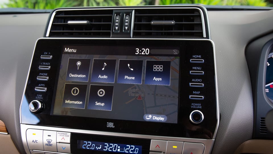 The air suspension also means the car will sit lower at freeway speeds to improve roadholding and fuel economy, but can give the Prado an instant lift when you encounter a goat track on the side of a mountain.