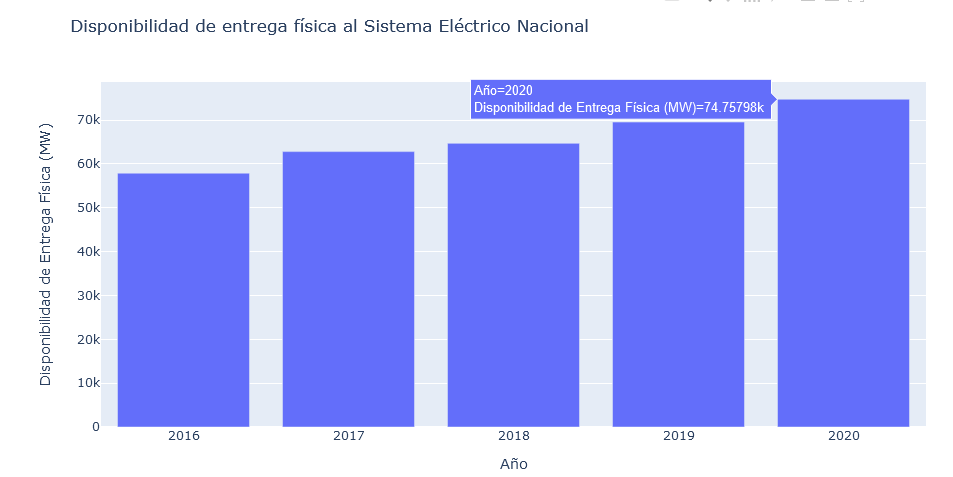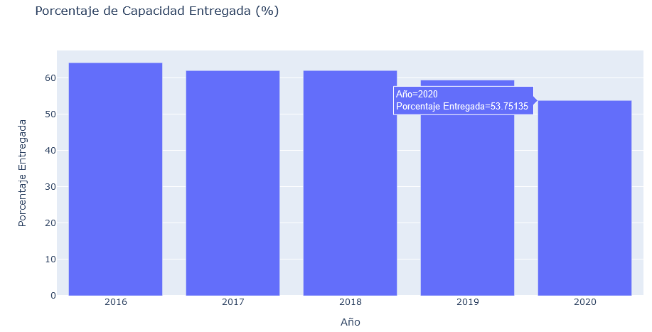 Y algo que podemos ver año con año para el sistema grande de México, es que aunque la capacidad crece, la Potencia disponible en las horas críticas del sistema no. De hecho, la tendencia es que la proporción de la capacidad total disponible con respecto a la instalada disminuya.
