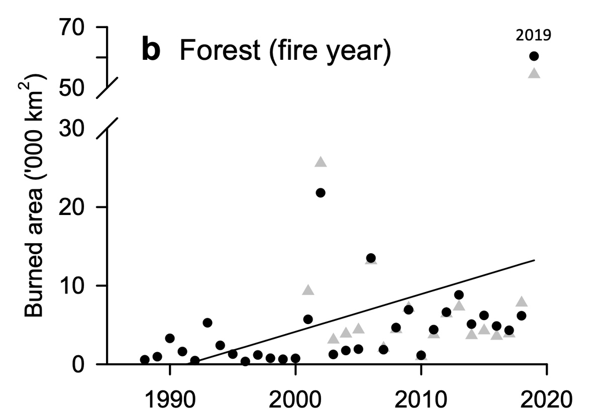 In @BoZheng18 et al, we report a sharp tipping point of climatic drought in the boreal region, which has led to an exponential increase in fire CO2 emissions over the past 10ys