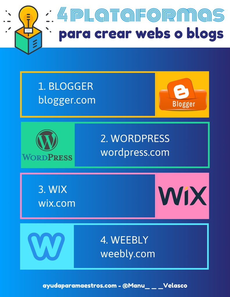 1️⃣ Crea un blog educativo para desarrollar la competencia digital de tus alumnos y como ventana al aula por la que puedan asormarse familiares, amigos y otros colegios. Para ello puedes utilizar Blogger o Wordpress. @wp_es