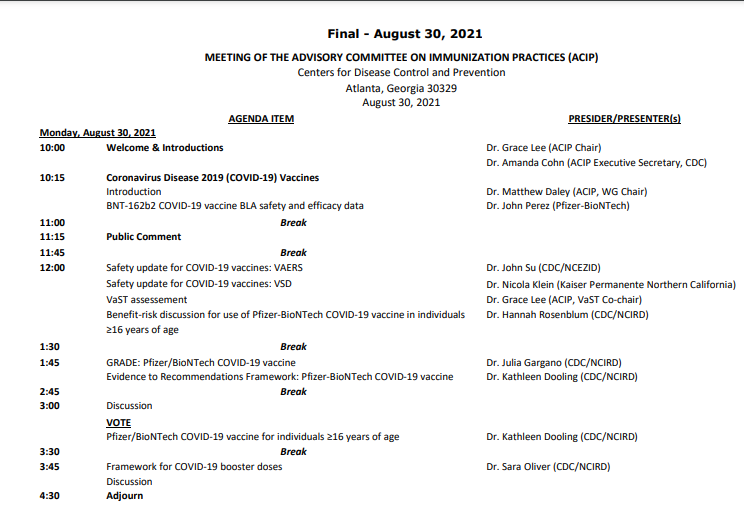 Na závěr této prezentace tedy ACIP updatoval navrhovanou timeline ohledně posouzení a doporučení booster dávek covid vakcín - v polovině září očekává další data.