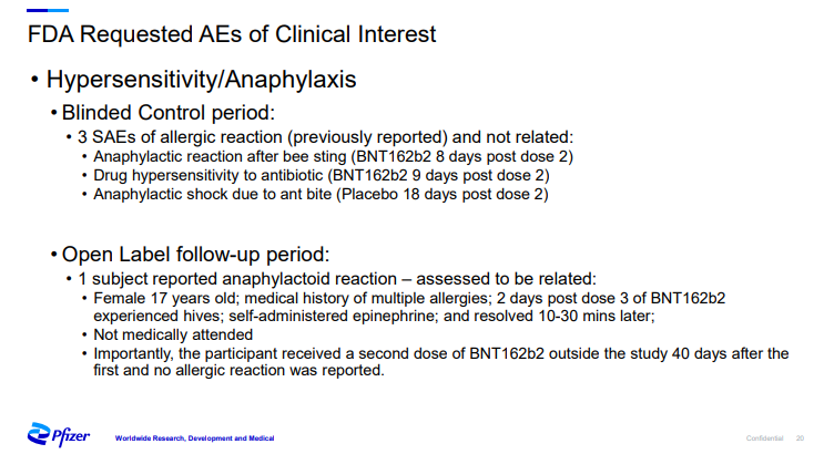 💉Safety data ze studií Pfizer po 1. dávce, včetně závažných NÚ(SAE) - žádné úmrtí ve studii nebylo považované za ve vztahu s intervencí