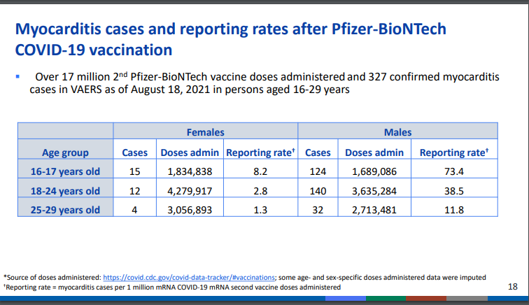 💉Update ohledně myo/pericarditid: do 18.8.2021 hlášeno celkově 2 574 myo/pericarditid (rozložení a očekávatelnost v tabulkách)