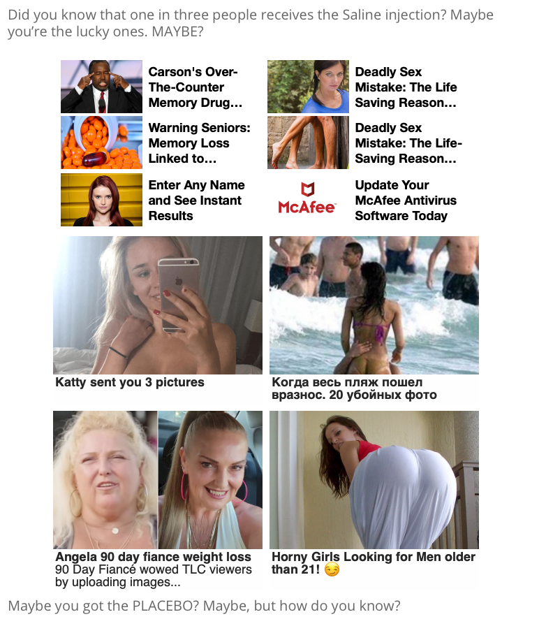 It announces, without proof, that one in three vaccinated people only receive a saline placebo. "Maybe you got the PLACEBO? How do you know??!?!" it asks the reader.