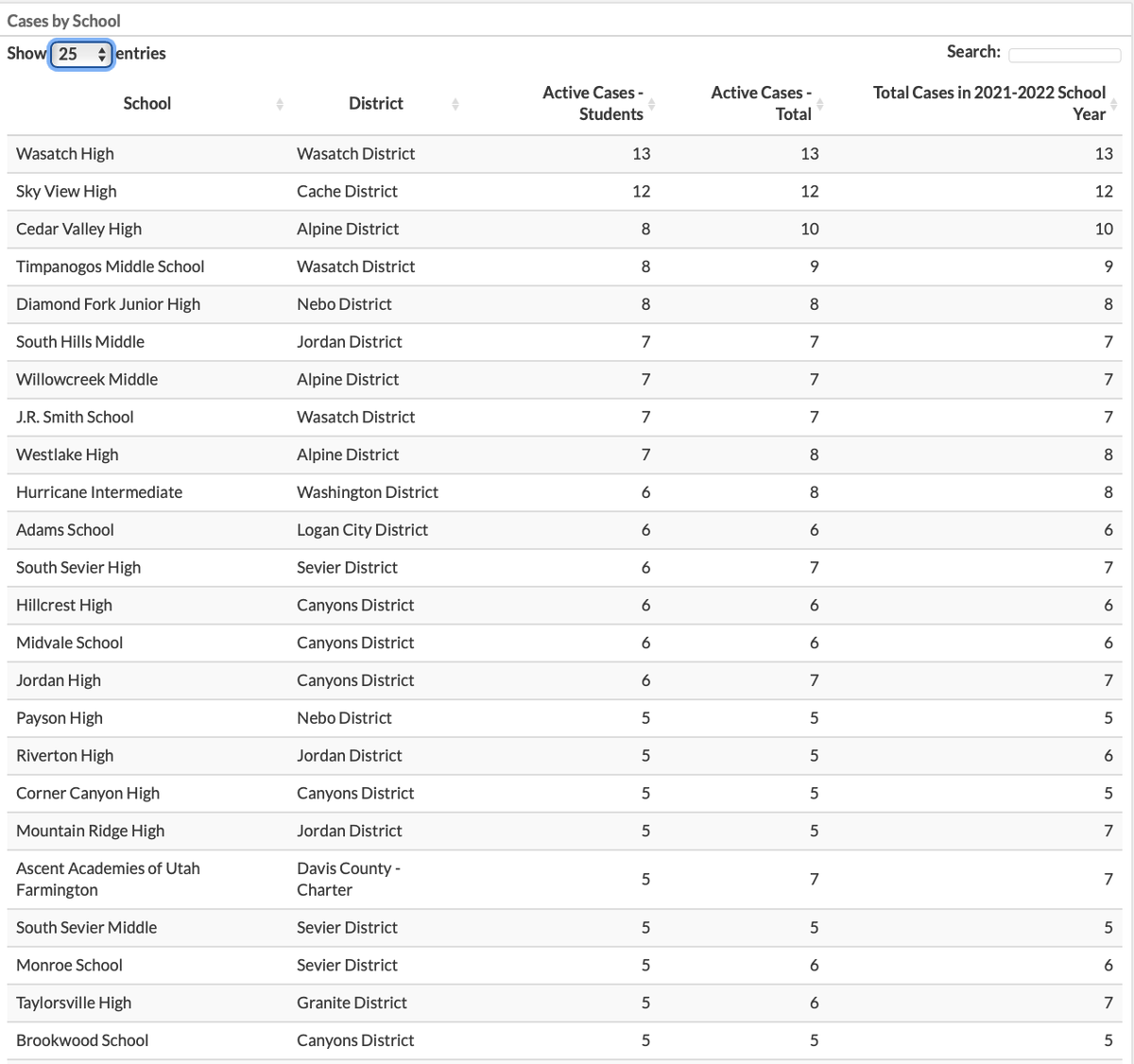 Here’s the list of schools with 5 or more cases in the past two weeks.