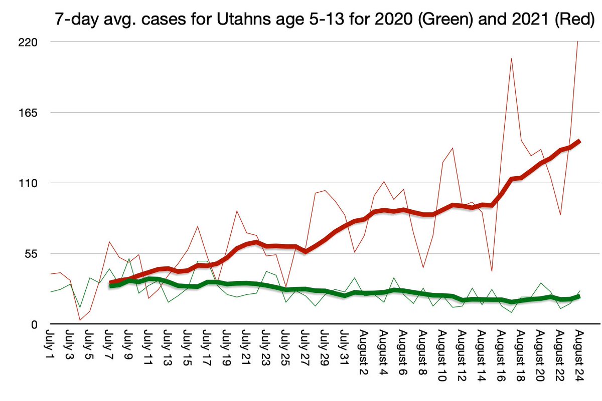 In last three weeks cases and hospitalizations have steadily risen. We don’t want to be here. Good news is vaccinations have been steady. Discouraged by large number not vaxxed. #utpol
