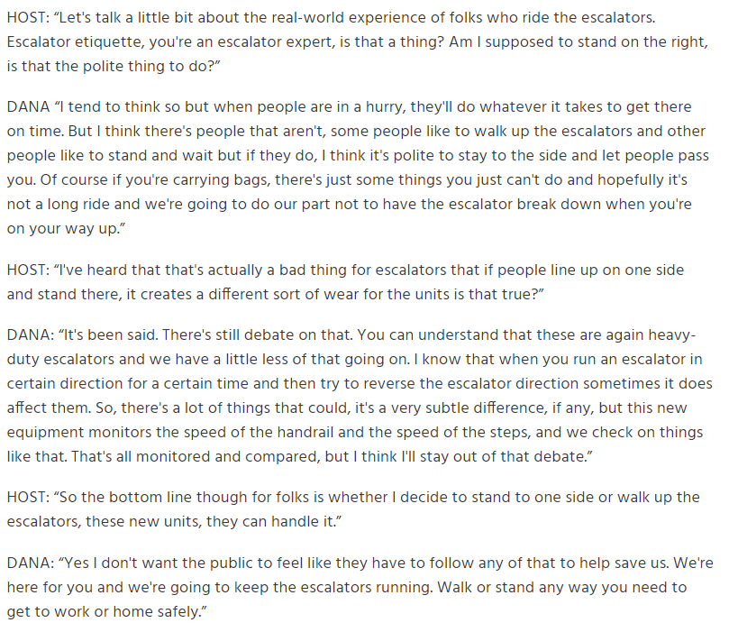 Dana also weighs in on the "should you stand on the right side of the escalator" debate.