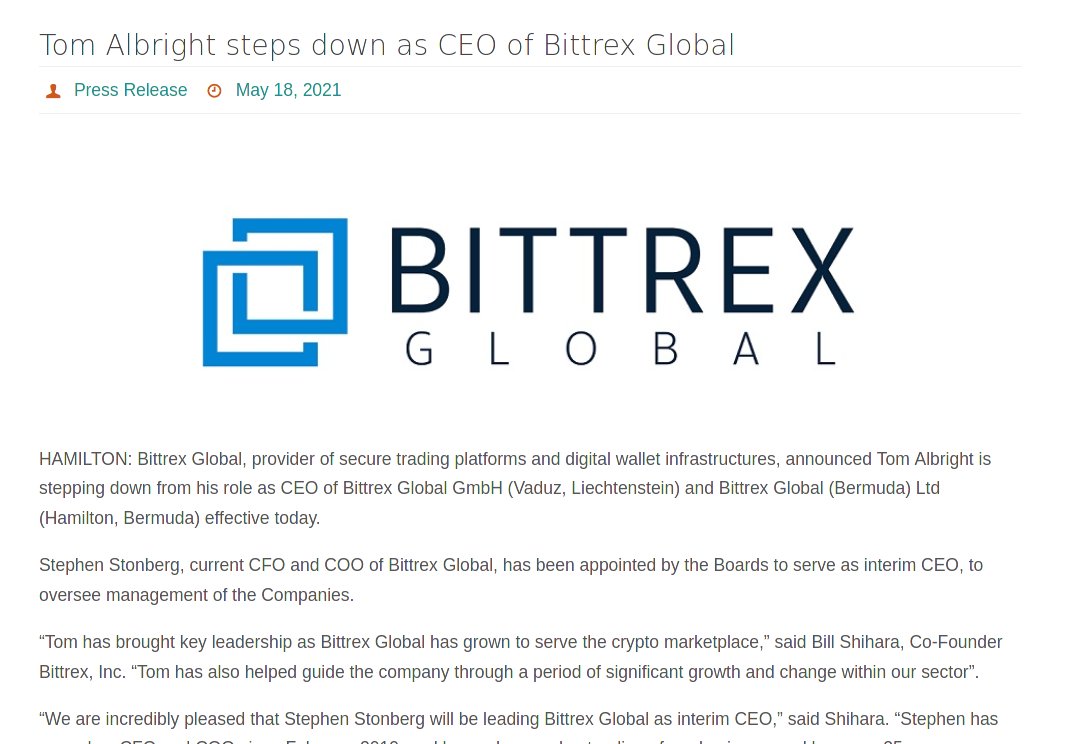 Both publicly listed execs of Bittrex (Thomas resigned mid-May '21; check the prices that day)