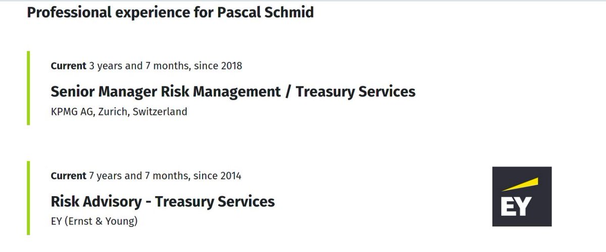 17/ Rounding things off, as I dug deeper into Pascal Schmid's background, the info I found appears to corroborate the idea that he is *currently* an employee of E&Y (Ernst & Young); I reached out to the firm for comment, got no response.