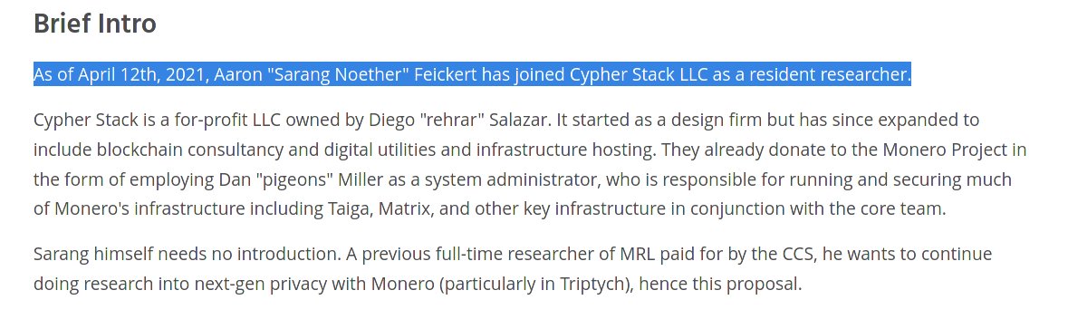 Under this company, he has "hired" other 'core developers' of @monero to work for him (strange for a community manager to hire the project's developers, right?)