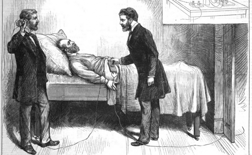 Bell visited the White House about a fortnight after the President had been shot, bearing a hastily-assembled electrical device (and a basket of grapes for the President's wife).