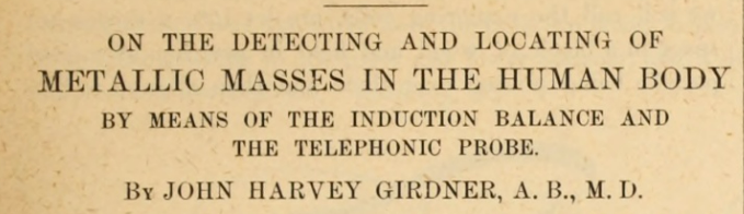 And it worked! In late 1887 Dr Girdner was able to report six cases in which he had succeeded in locating, and removing, bullets or shrapnel fragments that were invisible to the naked eye.