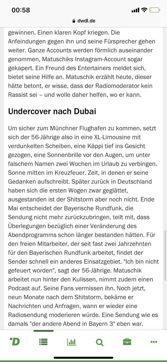 (he) triggered a huge shitstorm and had to hide in another country for some time: Radio host Matthias Matuschik.