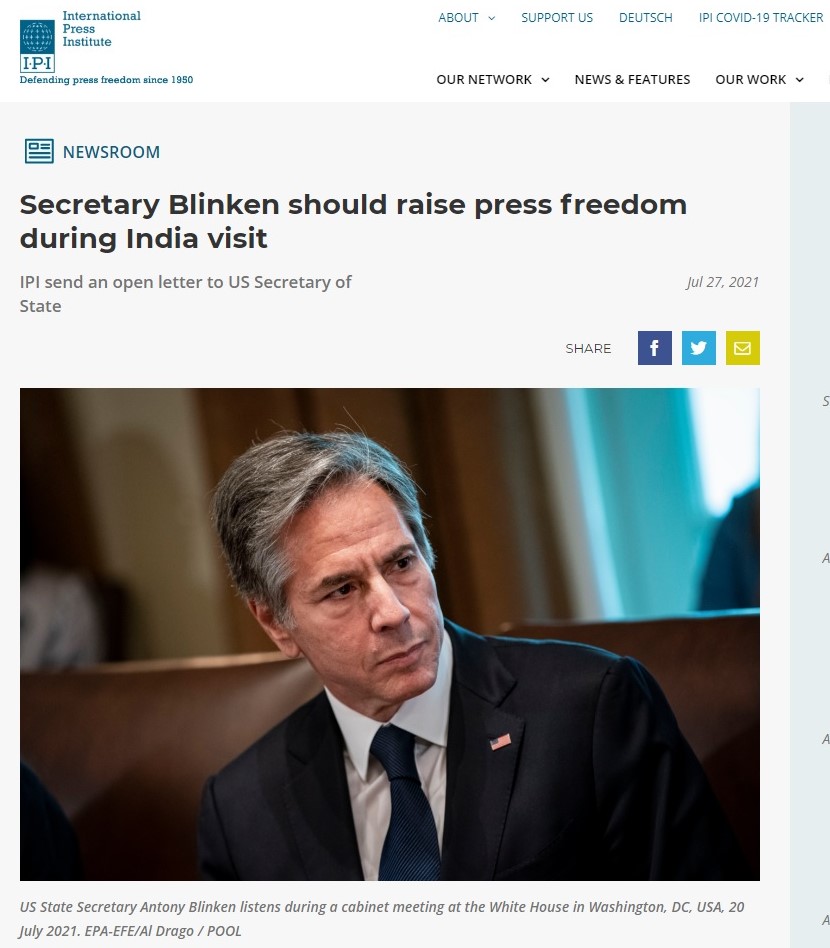 IPI, that receives lots and lots of money from western governments and gave award to The Wire, and has The Hindu's N Ravi as a member, wanted US Secretary of State Antony Blinken to raise issue of "press freedom" in India.