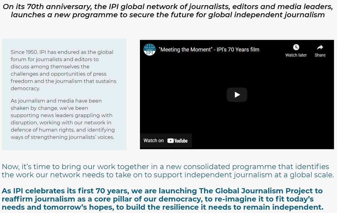 IPI has also launched a 'Global Journalism Project' using donor money from western governments and shady organisations such as Open Society. Is this journalism or western propaganda?