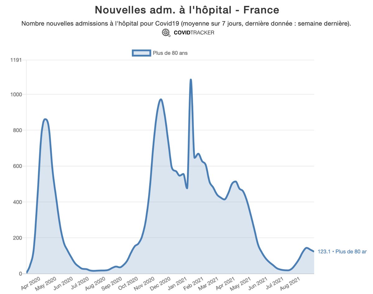 Suite à nos demandes, Santé publique France publie désormais les nouvelles admissions à l’hôpital par tranche d’âge. Merci à toutes les personnes impliquées dans ces changements 🙌🏻.