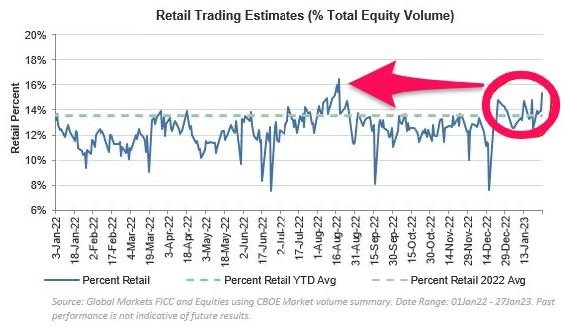 3/ Bullish retail sentiment, typically a contrarian indicator, has risen to the highest levels since last August into Jackson Hole.