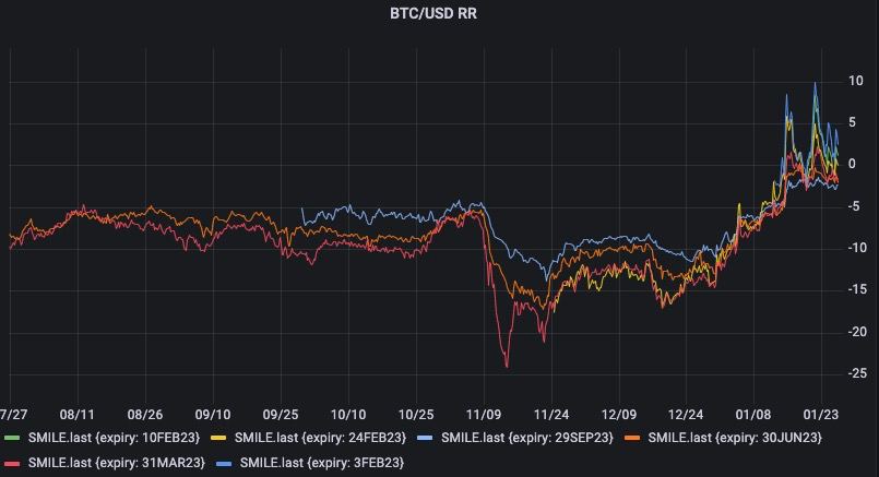 1. BTC risk reversals traded into positive territory (Calls more expensive than Puts) across multiple tenors last week for the first time since 2021.