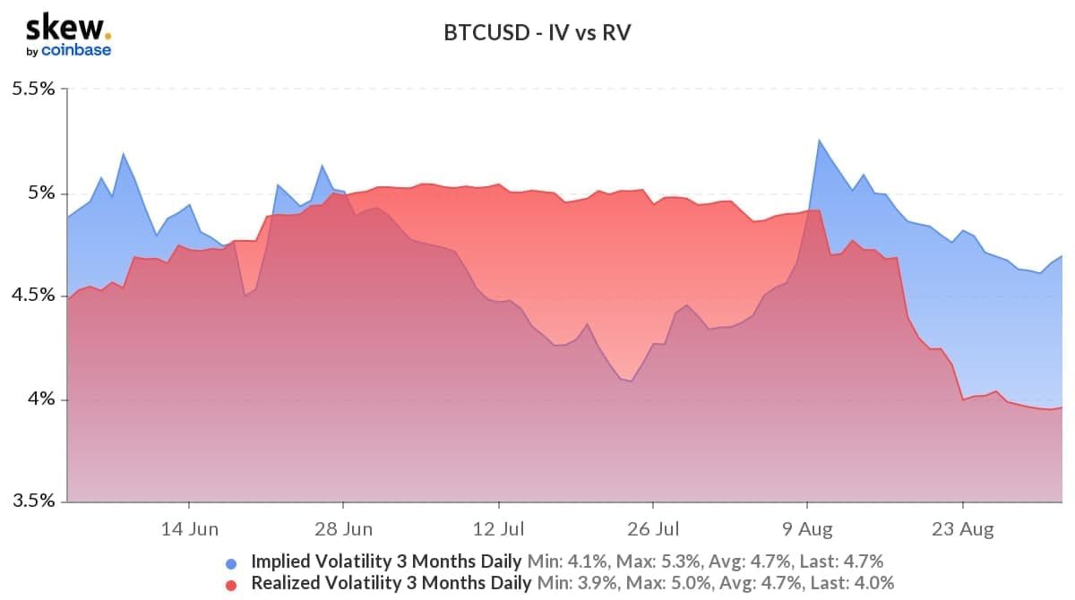 (a) BTC risk reversals have not broken out of range and remain close to par in spite of the call buying onslaught