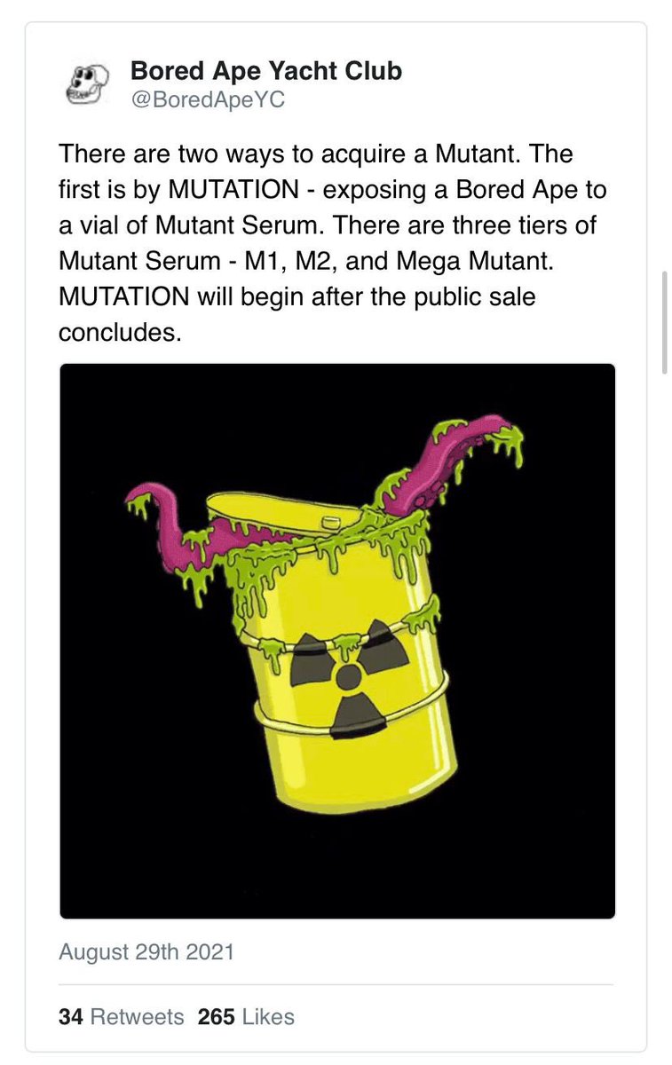 5) Using Chainlink VRF technology, BAYC randomly airdropped three different tiers of mutant serums: M1 serums, M2 serums, and M3 “Mega Mutant” serums, with each level up providing holders with wilder mutation possibilities. The main caveat? Apes can only be mutated once.