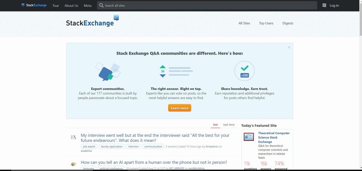 It has several communities that hold discussions about a particular topic including programming languages, computers, and more
