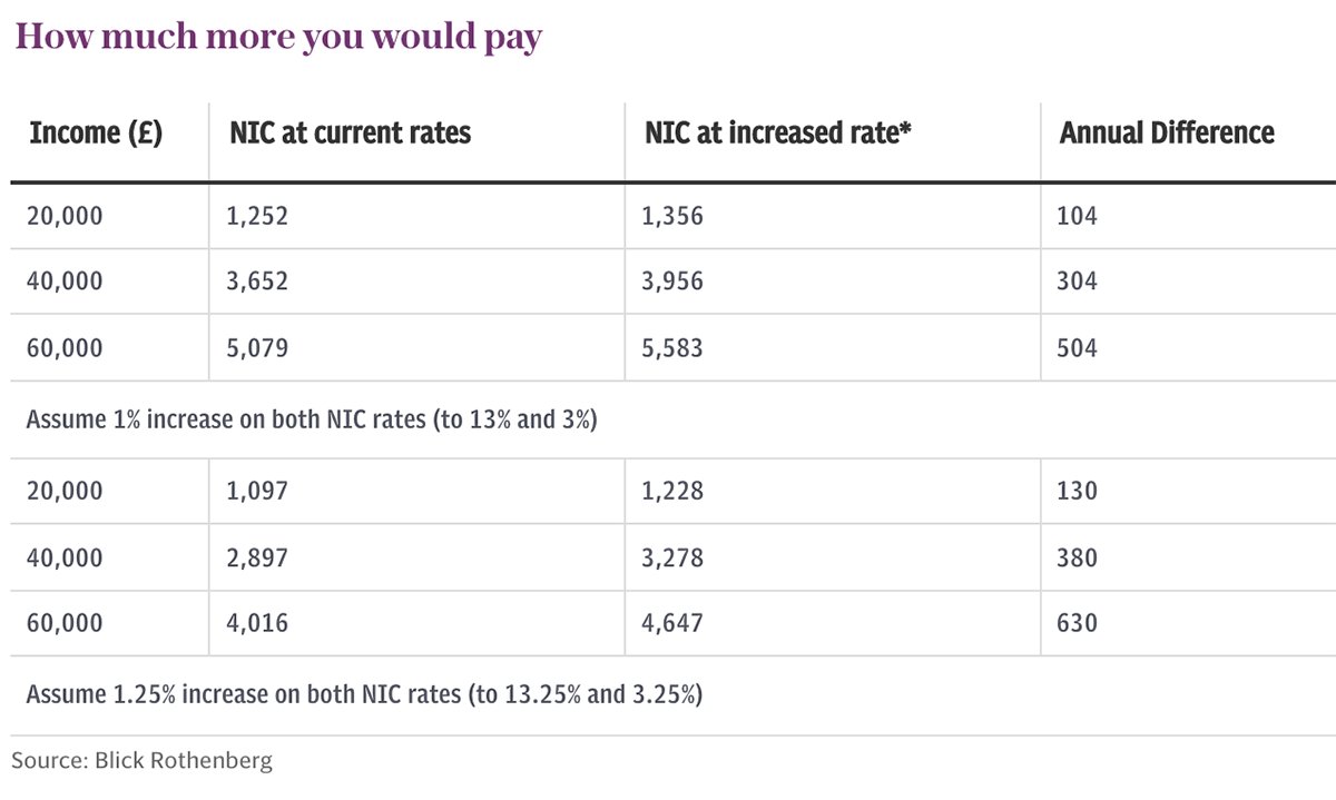 A worker on a £60,000 salary would pay £504 more a year in National Insurance if the main rate increased from 12% to 13% and the upper NI rate was raised to 3%…