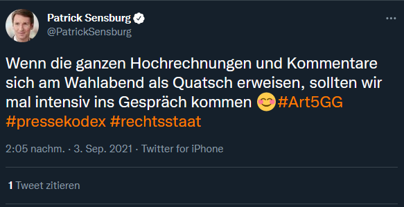 Heute lernen wir, wie wir aus einem Tweet eines #SPD-Mitglieds -@mathiasrichel - eine offizielle Prognose machen, um damit auszudrücken, dass das Ergebnis der #CDU zur #Kommunalwahl2021 gegen den Trend der Prognosen für die Kommunalwahl war. /TN