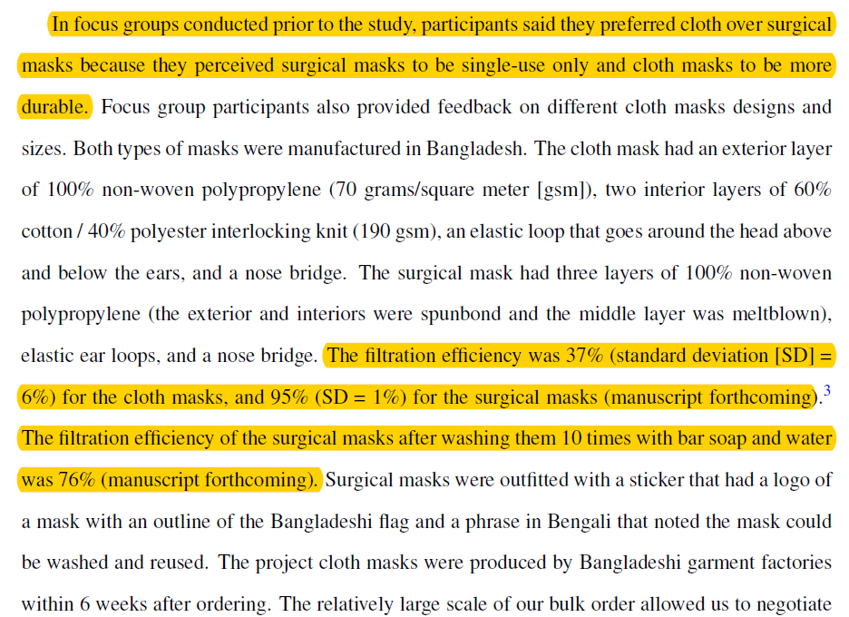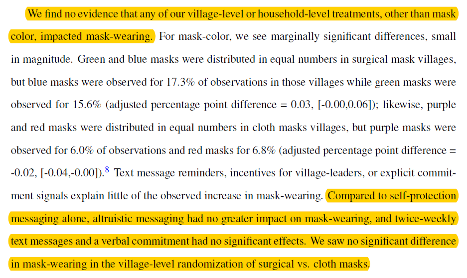 But NO randomized community or household level intervention, except maybe mask color, increased mask wearing. Design matters. Rest not so much