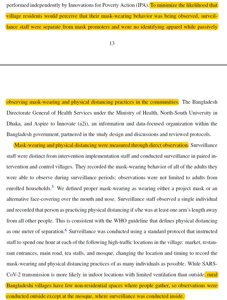 Impressive to randomize to intervention strategy, but even more impressive to directly observe mask adherence & major co-intervention of distancing in a way to minimize Hawthorne effect bias