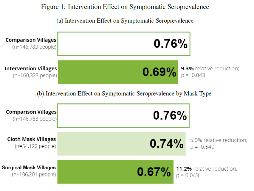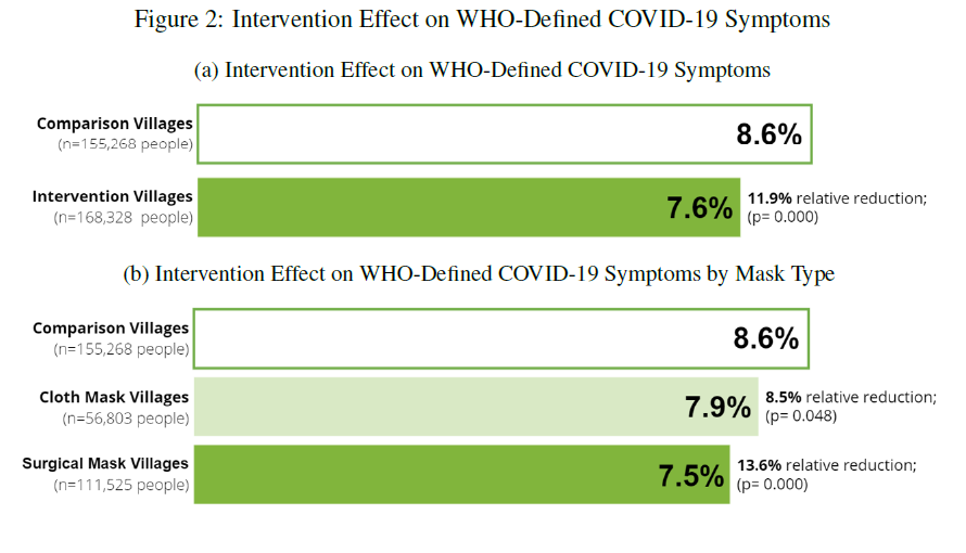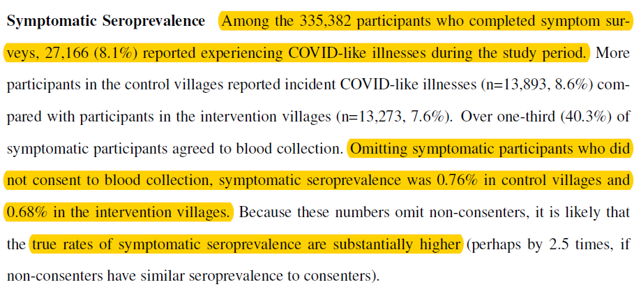 Symptoms alone is very prone to reporting bias if you knew you wore masks & inflates outcomes ~10 fold based on findings here