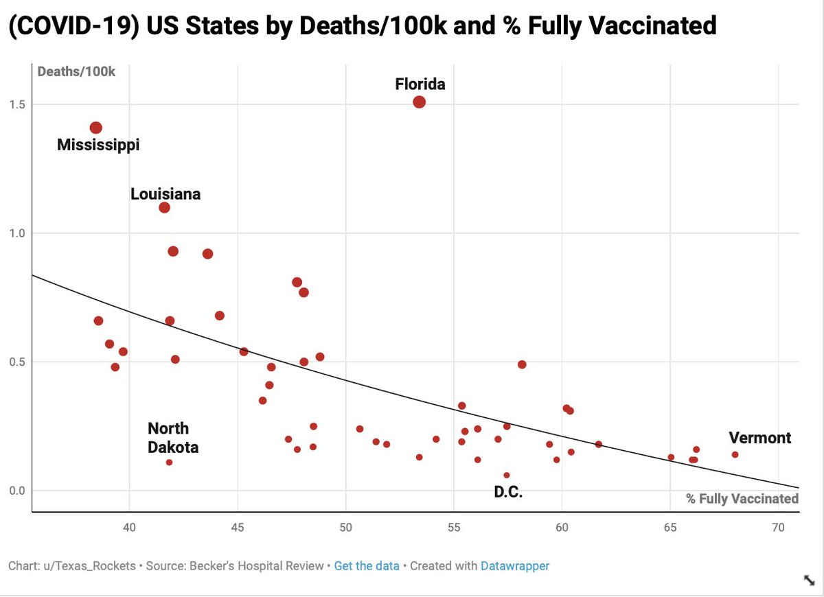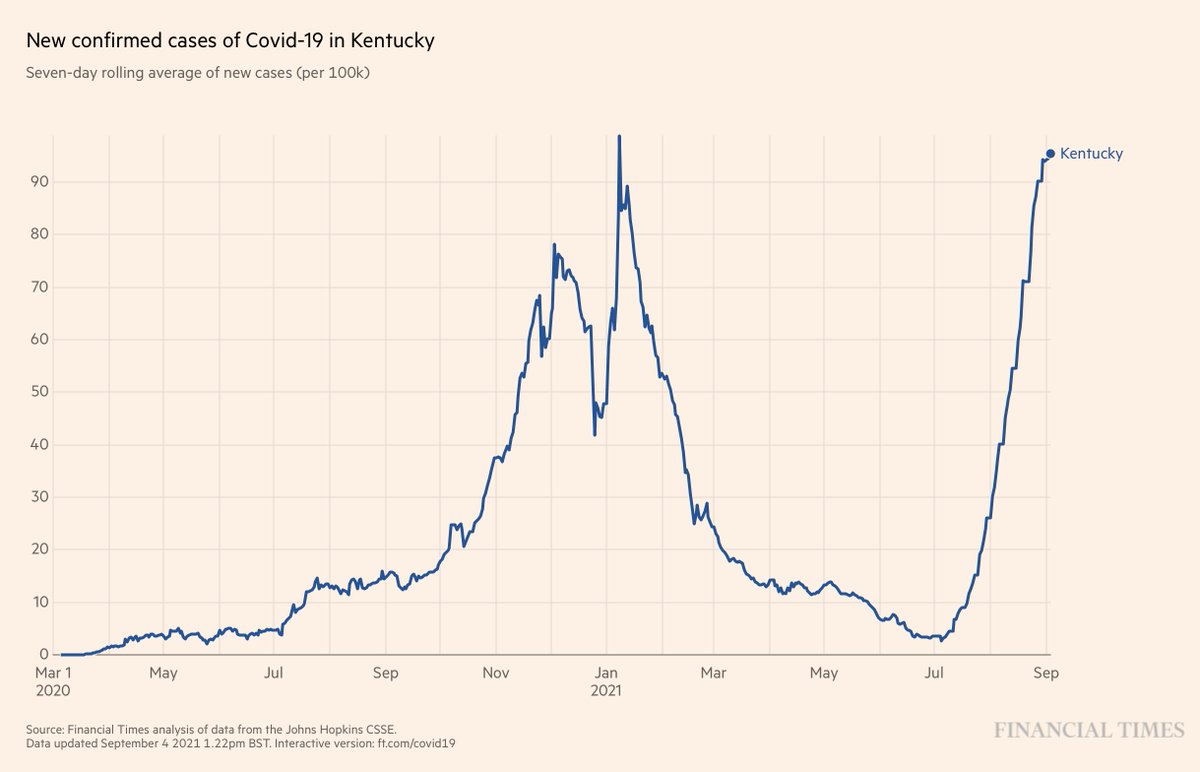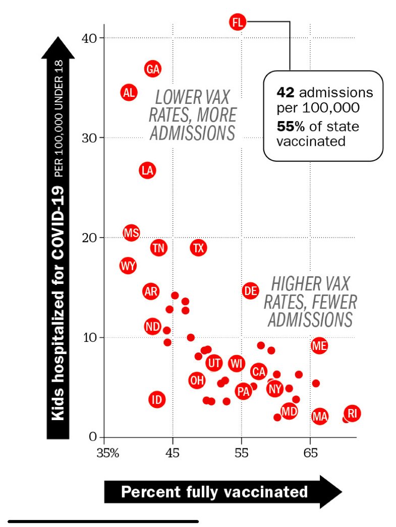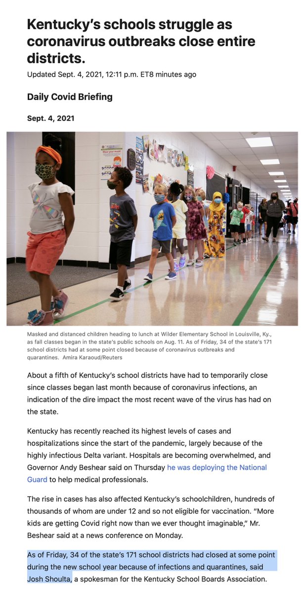 Kentucky, not shown on the graph, with 49% vaccination rate, now at peak pandemic, with this really sad and eminently preventable school struggle