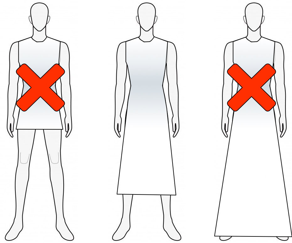 …el ridículo. De esta forma, ni era bueno llevar una túnica hasta los pies ni tampoco subida hasta las ingles.