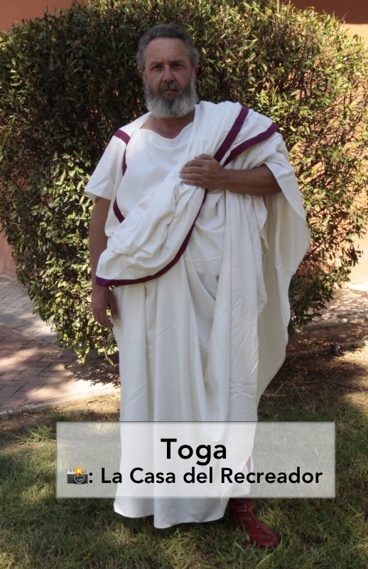 …de dónde proviene, si del himation griego o de la trabea etrusca.