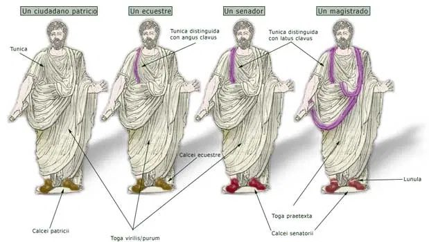 Dependiendo de los clavii (adornos) cosidos a la túnica, se podía identificar la clase social del portador.
