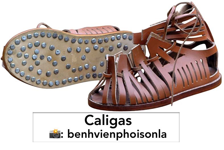 2) Las mullei eran Botas altas de piel y reforzadas con correajes. Eran propias de la indumentaria militar, igual que la caliga, que era un calzado cerrado y reforzado en la suela por remaches metálicos.