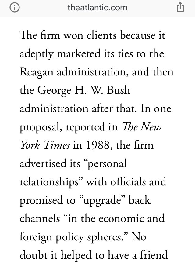 @arapaho415@TeresaCCarter2@insiderfilms1@sisu_sanity@clearing_fog@TheAtlantic No doubt it helped to have a friend in James Baker, especially after he became the secretary of state under Bush. “Baker would send the firm clients,” Kelly remembered. “He wanted us to help lead these guys in a better direction.”