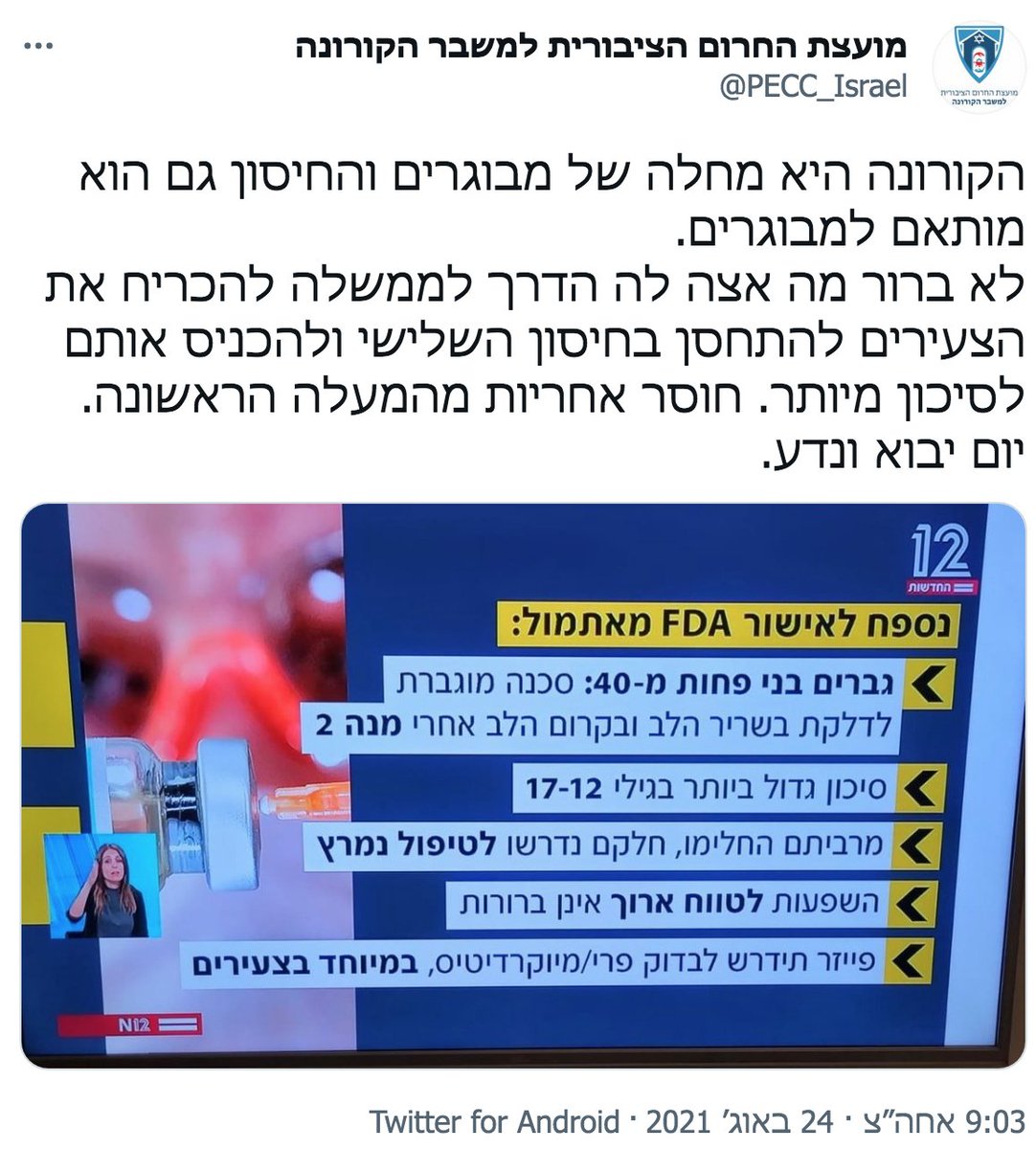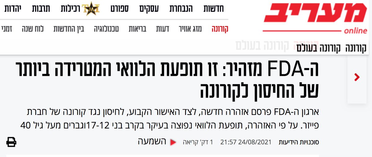 ביום ב' ה-23.8 אחה"צ (שעון ישראל) קיבל החיסון של פייזר אישור קבוע של ה-FDA. fda.gov/news-events/pr…