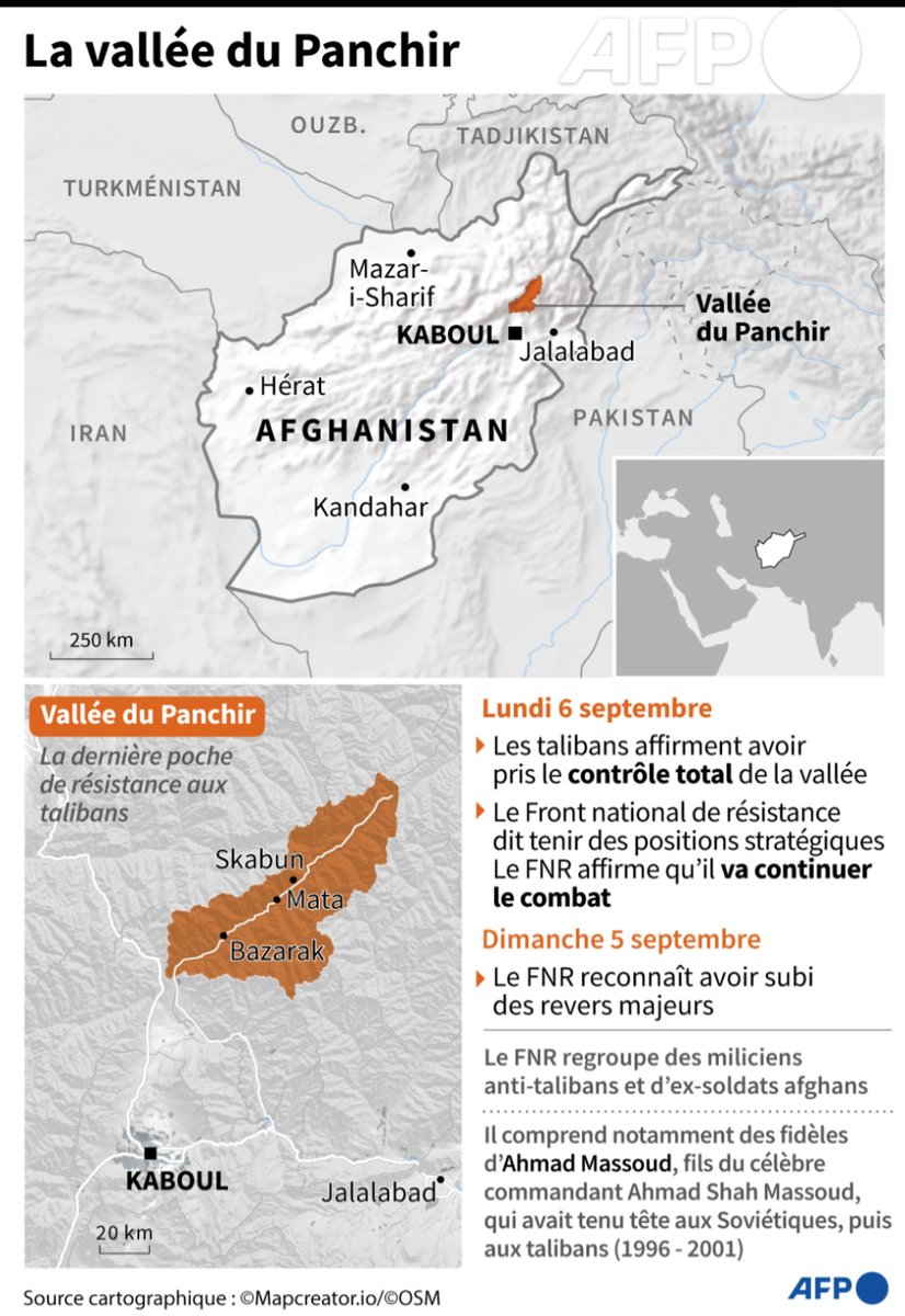 Les talibans disent avoir le contrôle de tout l'Afghanistan, affirmant avoir fait tomber la vallée du Panchir où le chef de la résistance locale, Ahmad Massoud, a appelé à se soulever contre eux 2/5 #AFP