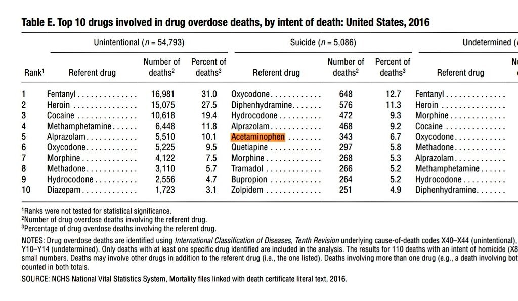"500 people die in the U.S. from overdosing on acetaminophen, with another 55,000 to 80,000 ending up in the ER for the same reason"