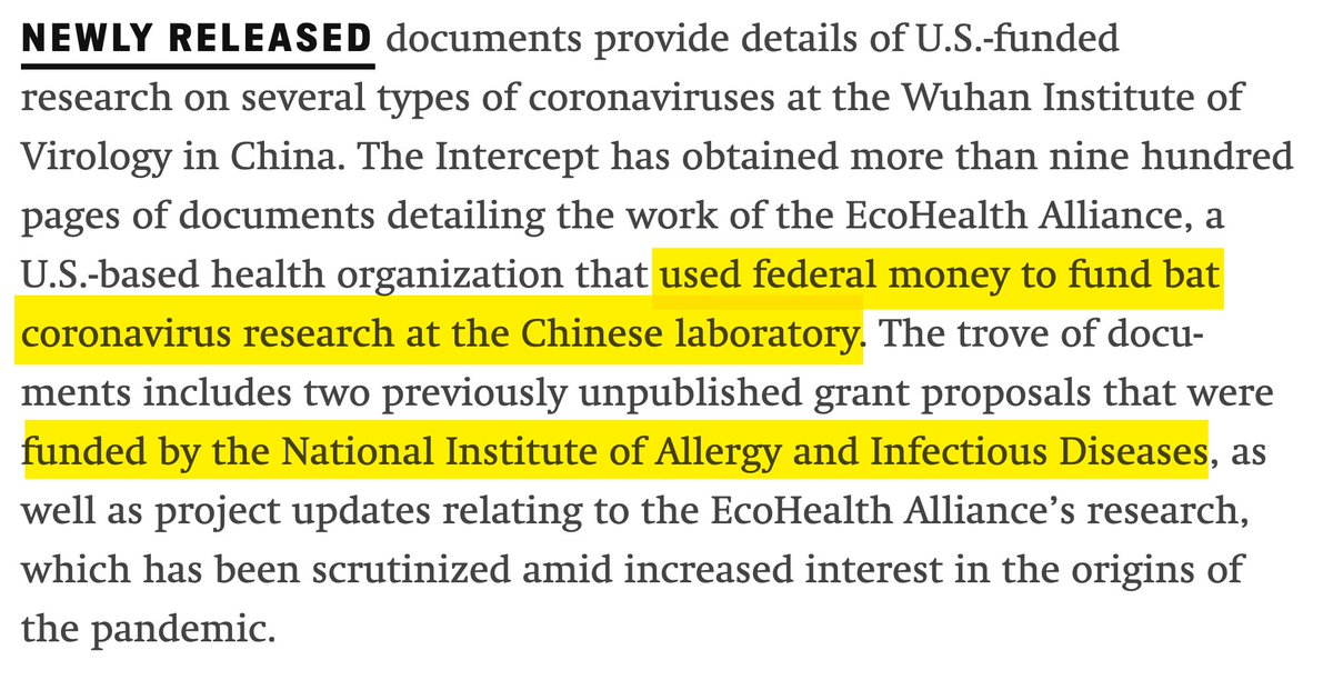 Anyway, whatever their motives were and however flagrantly they went out of their way to avoid even mentioning the name "Fauci" -- despite how central he is to the story -- @theintercept just did more to advance the lab-leak theory than anyone in months: