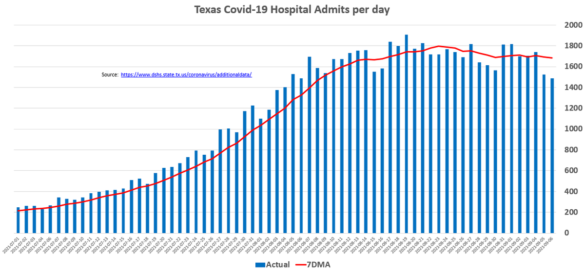 Another good day across the board. Hospital Admits are dropping strongly. We will watch for tomorrow and Thursday to see if this recovers as part of Labor Day or not. They've been dropping for 2 weeks so likely not a whole lot of rebound