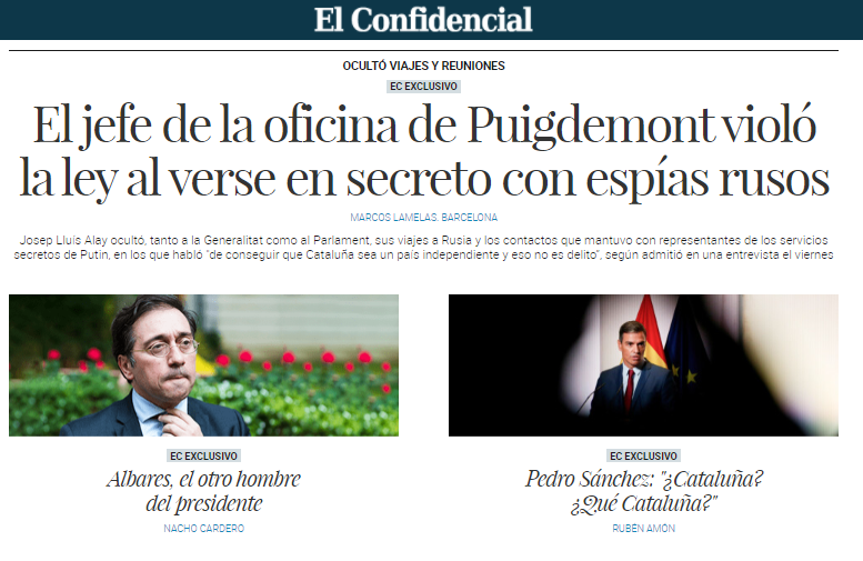 En portada | El jefe de la oficina de Puigdemont violó la ley al verse en secreto con espías rusos elconfidencial.com