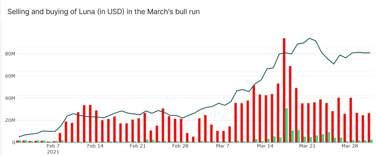 We also see some 'fomo' buying activity when Luna reached its peak around March 17 - 21 as buying volume is high during those dates